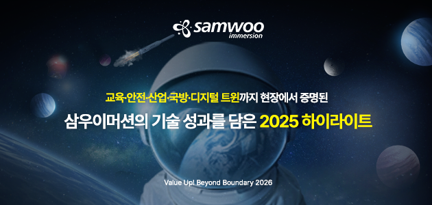 이번 2025 하이라이트는 플랫폼 구축부터 XR 시스템 개발, 현장 맞춤형 구축 사례와 국방·산업·교육 분야 적용까지 삼우이머션이 현장에서 축적해온 기술 적용 사례를 담고 있습니다. 이제 삼우이머션은 축적된 기술과 운영 경험을 바탕으로 2026년을 향해 한 단계 더 확장된 도전을 준비하고 있습니다. XR 플랫폼과 훈련 시스템, 디지털 트윈과 국방·산업 시뮬레이션까지, 삼우이머션의 기술은 보다 복합적인 환경과 고난도 요구에 대응하는 방향으로 진화하고 있습니다.